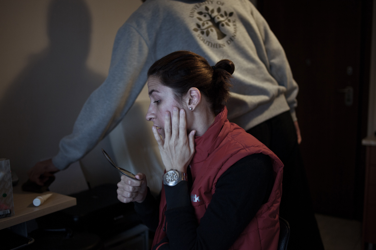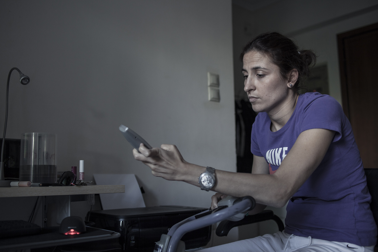 Thessaloniki, Greece, 10/2011 • “Alone, alone, alone,” says Panagiota Tsinonis, describing her life since being forced to stop working because of MS. Previously an oncology surgeon with an active social life, she finds that friends drifted away and that the loss of balance limits her own movement through the few blocks around her apartment. Like many PwMS, Panagiota Tsinoni has found new friends within the local MS community. This network provides support in hard times and also celebrates successes: tonight, she and others will help fellow patient Manolis Tsatsiadis “warm up” his new apartment.